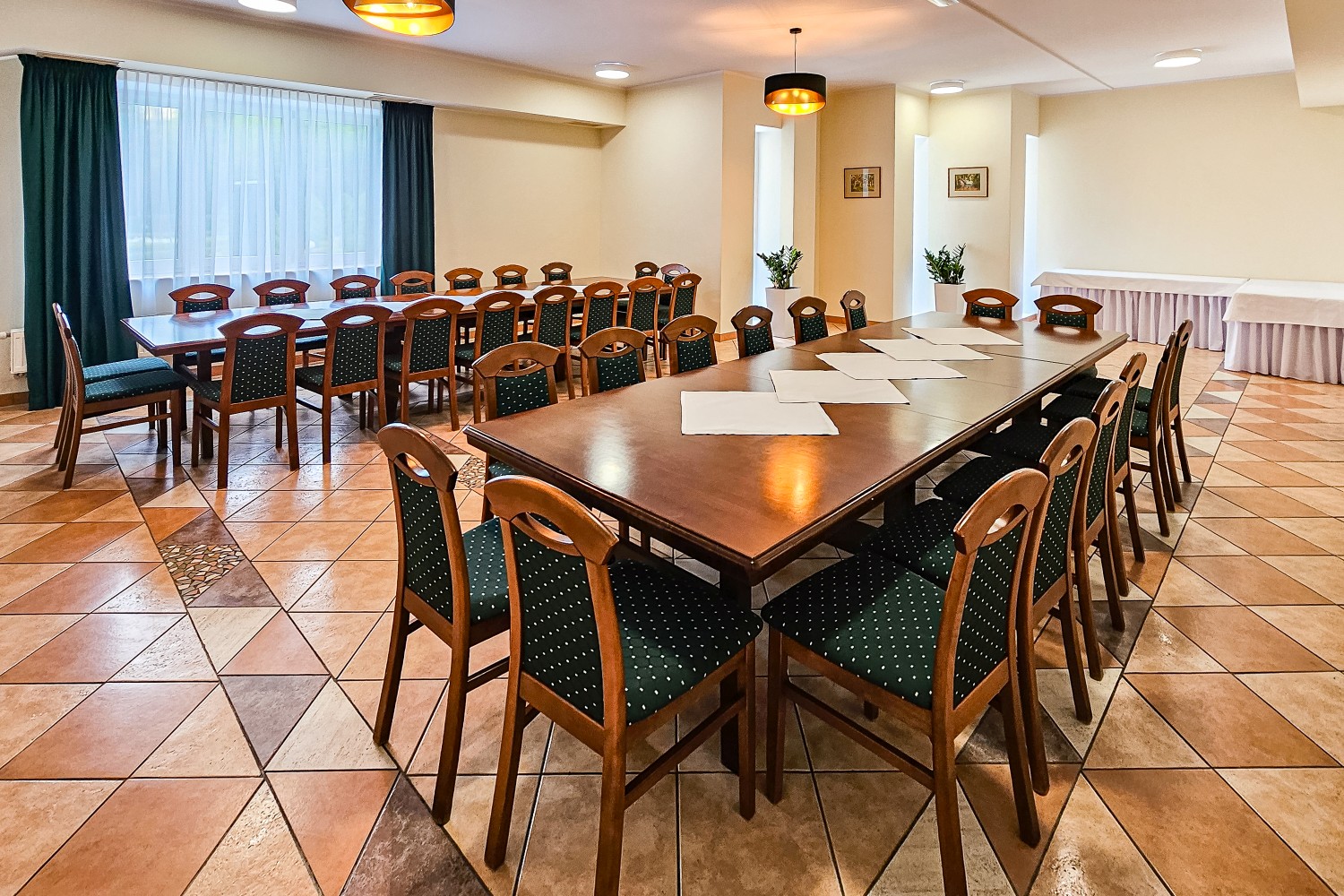 Sala bankietowa o powierzchni 57 m2 może jednorazowo pomieścić 40 gości, wykorzystywana jest głównie do organizacji przyjęć okolicznościowych (komunii, chrztów, przyjęć weselnych czy jubileuszy) ale także szkoleń małych grup.