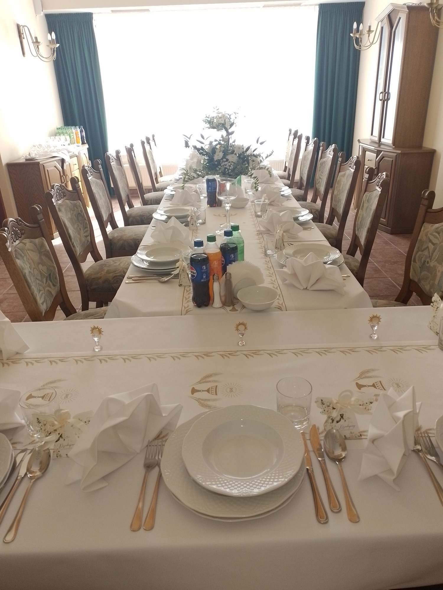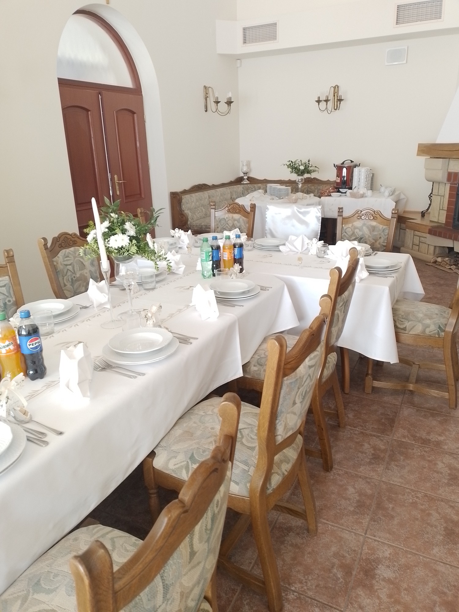 Sala kominkowa o powierzchni 41 m2 może jednorazowo przyjąć 20 gości, wykorzystywana jest do organizacji małych przyjęć okolicznościowych (komunii, chrztów, przyjęć weselnych czy jubileuszy) oraz szkoleń małych grup.